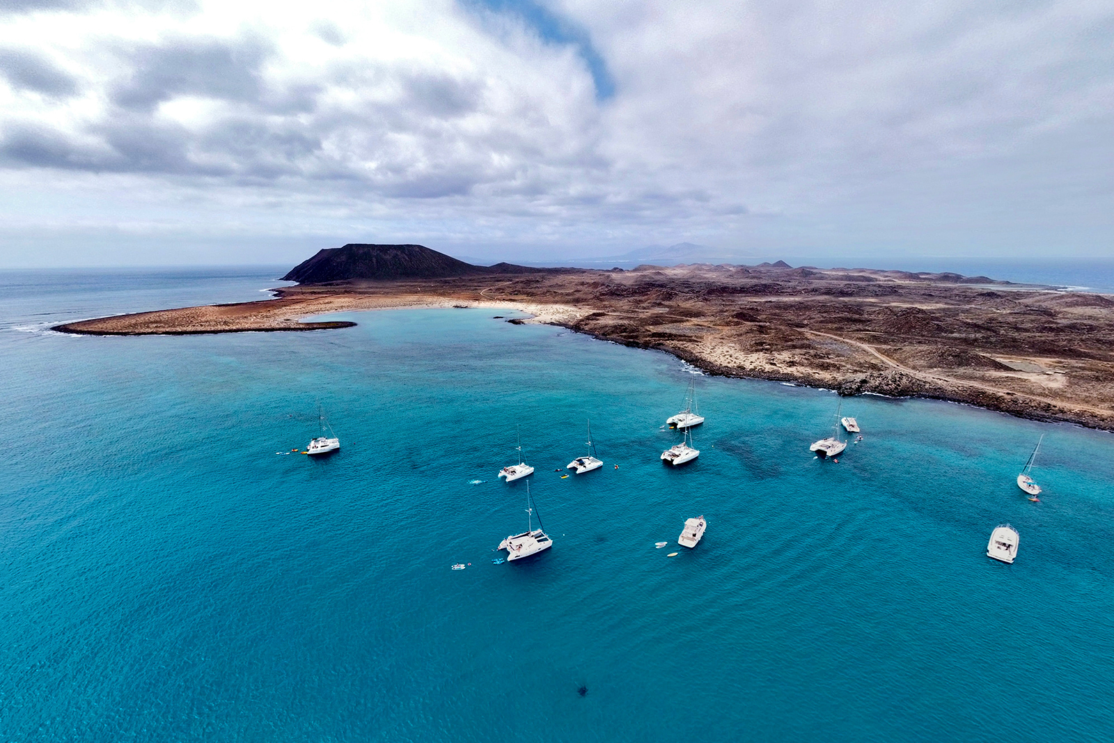 La isla de Lobos es un islote situado al norte de Fuerteventura, en las Islas Canarias. Se trata de una reserva natural prácticamente deshabitada que alberga una gran variedad de flora y fauna, incluidas aves raras. La playa principal, Playa de la Concha, es conocida por sus aguas transparentes. Los senderos atraviesan un paisaje de salinas y hornitos y conducen a la Montaña La Caldera, de origen volcánico, y al faro de Martiño, del siglo XIX.